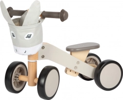 Leseni poganjalec z motivom oslička je idealen za otroke, ki se učijo gibati varno in samozavestno. Zelo stabilna konstrukcija skupaj z mehkimi, gumiranimi kolesi ne le ščiti talne obloge, temveč tudi omogoča tihe vožnje. Ergonomski gumijasti ročaji otrokom zagotavljajo trden oprijem in enostavno upravljanje.