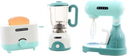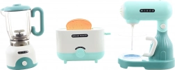 Zabaven set kuhinjskih aparatov za male kuharje vsebuje mešalnik, ročni mešalnik in toaster na baterije. Igrače oddajajo svetlobne in zvočne učinke ter imajo premične dele, ki verno posnemajo prave aparate. Idealno za razvoj domišljije in igranje vlog za otroke od 3 let dalje.