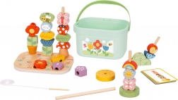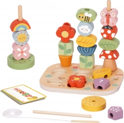 Odkrijte čar učenja skozi igro z lesenim kompletom Tooky Toy Magic Garden. Ta pametni box ponuja 5 aktivnosti v 1 – nizanje, razvrščanje oblik in barv, gradnjo stolpov po kartah, ujemanje in praktično shranjevanje. Veliki, gladki koščki iz varnega, ekološkega lesa razvijajo fino motoriko, koordinacijo oko–roka in logično mišljenje.