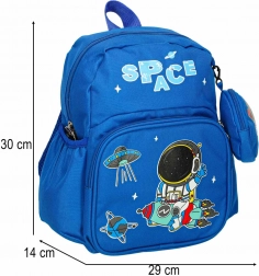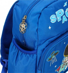Odkrijte raznolike možnosti shranjevanja s tem otroškim nahrbtnikom. Glavni večji predal z zadrgo nudi dovolj prostora za večino potrebščin predšolskega otroka. Sprednji manjši žep je popoln za drobnarije ali malico, medtem ko okrogla torbica na sprednji strani nahrbtniku daje edinstven videz. Ob straneh so žepi, idealni za steklenico z vodo ali robčke.
