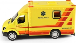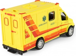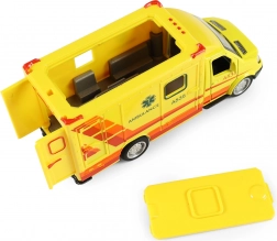 Prvovrstna otroška reševalna vozila v opazni rumeni barvi ponujajo trdno izdelavo iz kovine in odporne plastike. Zahvaljujoč povratnemu vztrajniku hitro steče v akcijo – samo potegni in spusti. Realistični detajli, potiski in prozorna okna spodbujajo domišljijo in tematsko igro vlog reševalcev.