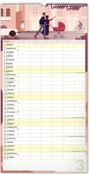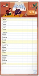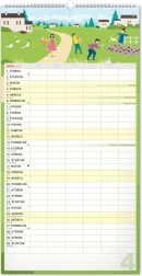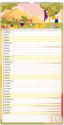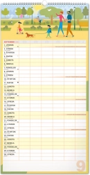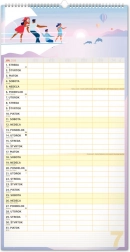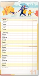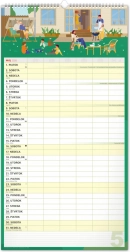 Velik format koledarja je idealen za celo družino. Slovenski koledarski sistem in samostojen planer aktivnosti za do šest članov gospodinjstva dopolnjujejo veseli grafični motivi, ki pokrijejo vsak letni čas.