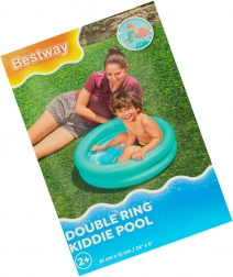 Ta okrogel bazen z dvema napihljivima obročema enake velikosti in varnostnimi ventili zagotavlja stabilnost in udobje pri igri. Barvito dno s potiskom doda bazenu čar in spodbuja otroško domišljijo.