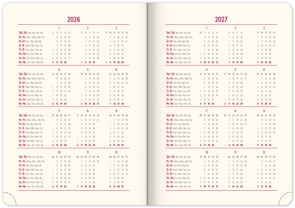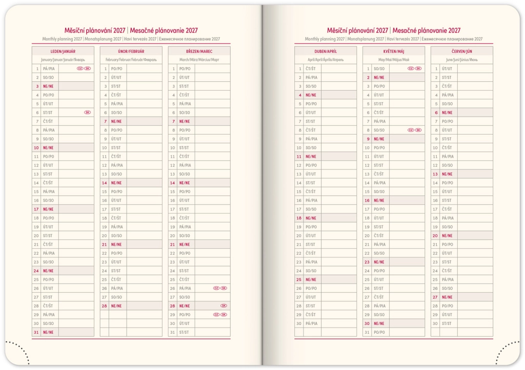 - Mesečni načrtovalni koledar 2026 in 2027, letni načrtovalni koledar 2026–2027