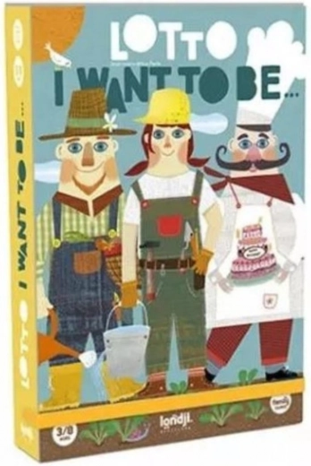 Loto LONDJI Rad bi postal je popolna igra za vso družino, ki na zabaven način spodbuja učenje o poklicih. Igralci imajo na voljo kartice z ilustracijami likov iz različnih poklicev in žetone z orodji, ki so značilna za te poklice.