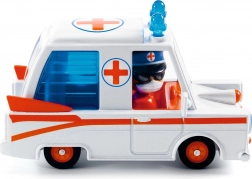 DJeco Crazy Motors rešilni avtomobil je odličen dodatek k vaši zbirki vozil. Izdelan je iz trdne kovine in opremljen z figurico z vrtljivo glavo, kar zagotavlja ure zabave za otroke.
