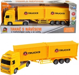 Doživite veselje do vožnje s tem dinamičnim tovornjakom na vztrajnik, ki je priložen z dvema zabojnikoma. Ta model je idealen za otroke, ki obožujejo vozila in transportna sredstva. Tovornjak je opremljen s svetlobnimi in zvočnimi dodatki, ki vnašajo v igro pristno izkušnjo.