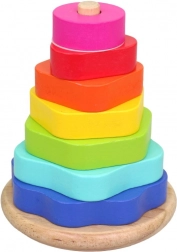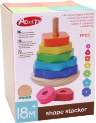 - Vsebuje osnovo in sedem barvitih oblik, ki se postopoma nalagajo na osnovo.