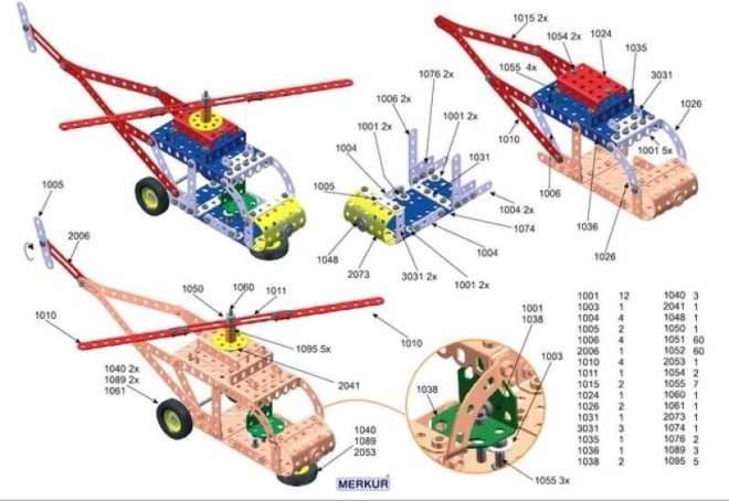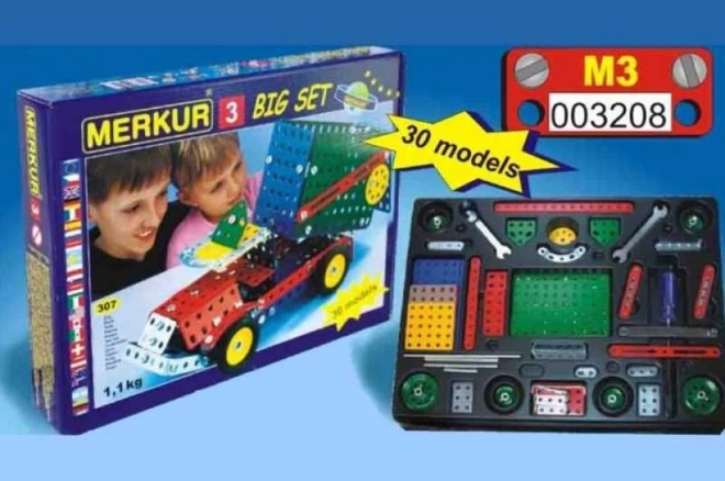 Predstavljamo sestavljanko MERKUR 3, ki je idealna za male in7eenirje in njihove star61e. Ta klasi0dna enoslojna sestavljanka vklju0duje 273 kosov vklju0dno s trakovi, loki, kotniki, kolesi in pnevmatikami. V paketu ne manjka niti vijakov in matic, ki jih potrebujete za sestavljanje 61irokega spektra modelov.