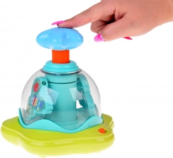 Glavna privlačnost so vrtinčaste luči, ki pritegnejo pozornost in spodbujajo otroke k aktivni igri. Kombinacija barvitih svetlobnih učinkov in dinamičnega gibanja razvija vidno-motorično koordinacijo ter spodbuja otrokove čute.