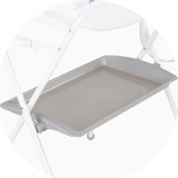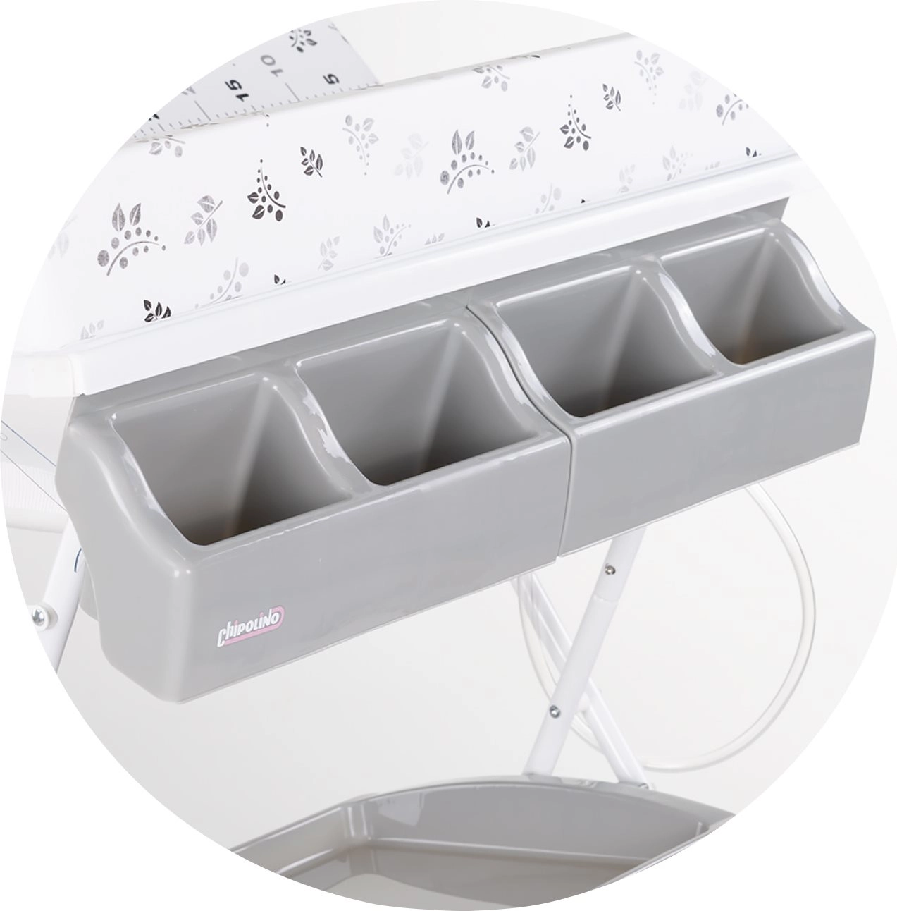 Kadička s previjalno podlogo in stojalom Aqua Friends znamke Chipolino je idealna za novorojenčke in otroke do 12 mesecev. Ta previjalna miza je hkrati tudi kadička, ko odstranite previjalno podlogo. Priložen je zložljiv stojalo za enostavno shranjevanje in predalček za dodatke.