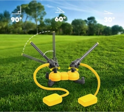 Dvojni penasti izstreljevalnik raket je idealen za aktivno zabavo na vrtu, v parku ali na otroškem igrišču. Raketke so lahke, izdelane iz mehke pene in varne za otroke, obenem pa ob vsakem izstrelitvi poskrbijo za veliko vznemirjenja. Nastavljivi izstreljevalniki omogočajo poljubno nastavitev kota (od 30° do 90°) in smeri izstrelitve.