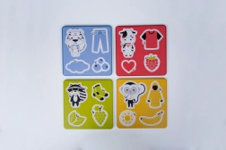 - 4 barvne plošče sestavljanke – stopnjevana težavnost za postopen razvoj spretnosti