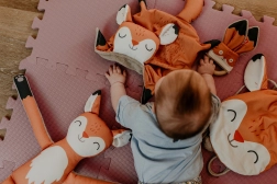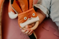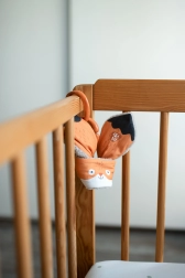 Igrača Grizalo Lisica od Ababu združuje izvirni dizajn z varnostjo za najmlajše. Materiali z avtorskim potiskom so iz 100 % bombaža, s certifikatom za otroke do 3 let. Obroč je iz naravnega bukovega lesa, ročno izdelanega na Višavju.