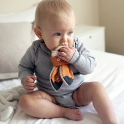 Grizalo Lisica od Ababu je idealna izbira za vašega otroka. Izdelano iz kakovostnih materialov v Češki republiki, s certifikatom za otroke od 0 let. Avtorski potisk in ročni bukov obroč zagotavljata varnost in izvirnost.