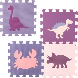 Sestavljanke izolirajo od hladu tal in odlično blažijo padce, kar jih dela idealno mesto za plazenje, igro in učenje hoje. Protizdrsna struktura zagotavlja, da se otrok lahko varno igra tako v sobi kot na terasi. Barvni odtenki rožnate, vijolične in turkizne dajejo podlagi moderen videz in stilski poudarek otroški sobi.