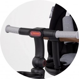 Ta tricikel ponuja multifunkcionalnost 2v1, kar pomeni, da se zlahka spremeni v tricikel za samostojno vožnjo otrok. Opremljen je z visokokakovostnimi gumijastimi kolesi za dolgo življenjsko dobo. Sedež z 360° vrtljivim mehanizmom omogoča dva položaja vožnje, višinsko nastavljiv ročaj pa se prilagodi potrebam odraslega.