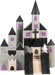 Lesena sestavljanka Strašni grad vnaša kanček magije in skrivnostnosti v otroški svet. Vsak izmed 97 kosov je potiskan in različnih oblik ter velikosti, kar omogoča neskončne možnosti pri gradnji gradu.
