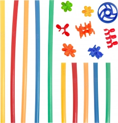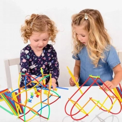 Ta ustvarjalni komplet združuje lahke prožne cevčice in več vrst konektorjev, s katerimi zlahka sestavite preproste ali napredne modele. Deli svetijo v temi, zato se vsaka zgradba po ugašanju luči spremeni v impresiven svetlobni šov. Hiter sistem pripenjanja podpira samostojnost otrok in tekoče učenje skozi igro.