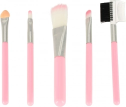 Pet različnih čopičev z rožnatimi ročaji in kovinskimi obrobami je idealnih za učinkovito nanašanje kozmetike.