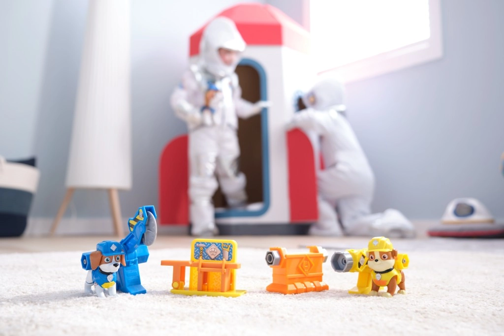 Ta zabaven komplet figuric PAW Patrol »Rubble in njegova ekipa« vključuje dvojico kužkov z vgrajenimi orodji, ki se aktivirajo s pritiskom na figurico. Otroci lahko dvigujejo in spuščajo zaporo, vrtajo z udarno vrtalko in razdelijo delovno mizo s pomočjo žage – kot v pravi delavnici.
