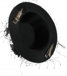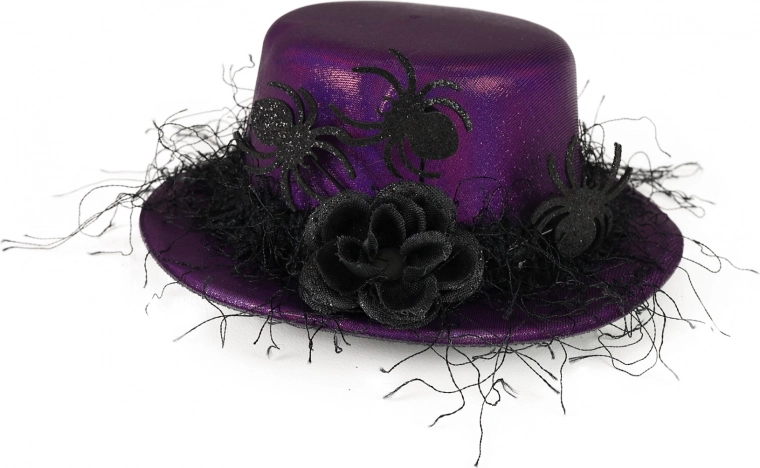 Priskrbite si ta stajliš mini klobuček, ki doda pridih elegance in izvirnosti. Sveža vijolična barva v kombinaciji s črnim trakom in cvetom naredi ta dodatek idealen za posebne priložnosti ali tematske zabave.
