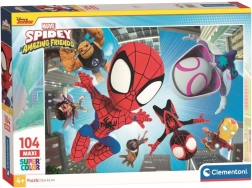 Odkrijte zabavo s sestavljanko Spidey in njegovi prijatelji: V zraku! Ta sestavljanka s 104 kosi ponuja ure zabave za otroke in odrasle.