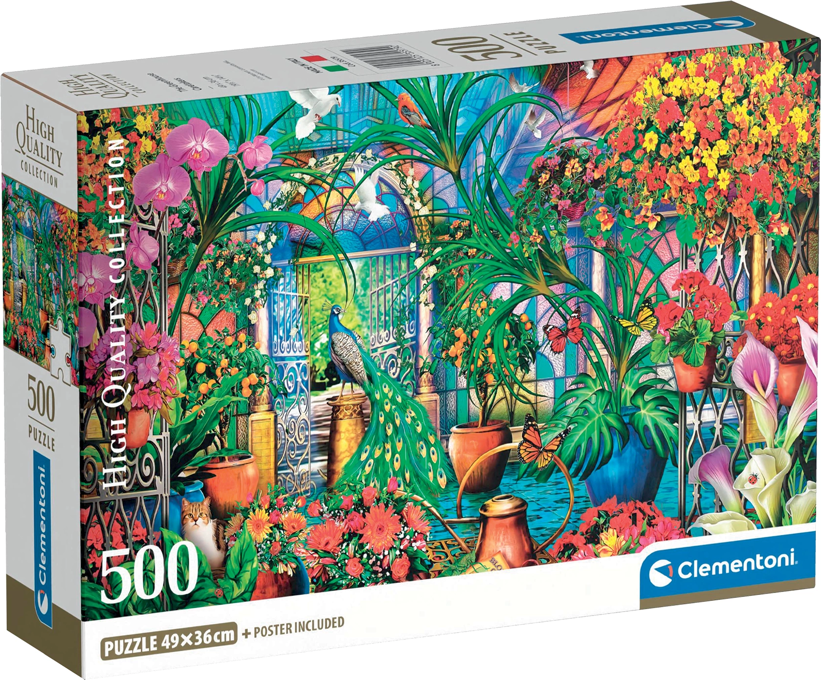 Uživajte v zabavnih trenutkih s puzzli znamke Clementoni velikosti 49 x 36 cm. Ta komplet vsebuje 500 kosov, s katerimi boste ustvarili sliko Stražarjev rastlinjaka. Odlična zabava za vso družino.