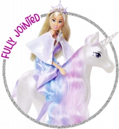 Uživajte v čudovitih dogodivščinah s punčko Steffi v čarobnih princeskinih oblačilih in njenim očarljivim svetlečim enorogom, ki ima dolgo grivo, idealno za česanje.