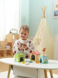 Ta igriva zbirka otroke uči, kako živali živijo in kako zanje pravilno skrbeti. S pomočjo barvitih lesenih delov, izdelanih iz lesa s certifikatom FSC, otroci razvijajo motoriko in koordinacijo oko–roka.