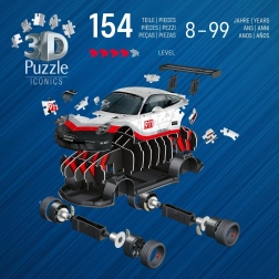 Model ima funkcionalna vrteča se kolesa in trdno notranjo konstrukcijo, ki zagotavlja maksimalno stabilnost po sestavljanju. Idealno darilo za oboževalce Porscheja, avtomobilske navdušence in ljubitelje 3D puzzlov.