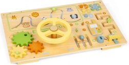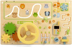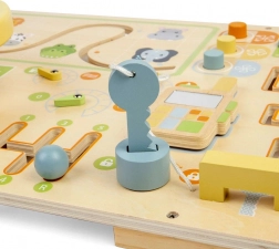 Aktivnostna deska je polna raznolikih dejavnosti, kot so gumbi, labirint, zobniki, vrtljive in drsne ploščice. Spodbuja fino motoriko in koordinacijo oko–roka, razvija spretnosti reševanja problemov ter razumevanje vzročno-posledičnih povezav. Otroci se učijo skozi igro in zabavo!