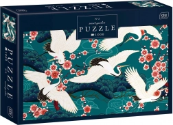 To puzzle Skrivni Vrt: Žerjavi z 1000 kosi vas popelje v svet miru in lepote. Sestavljena velikost je 67 x 48 cm, kar ponuja čudovit pogled na elegantne žerjave v skrivnostnem vrtu.