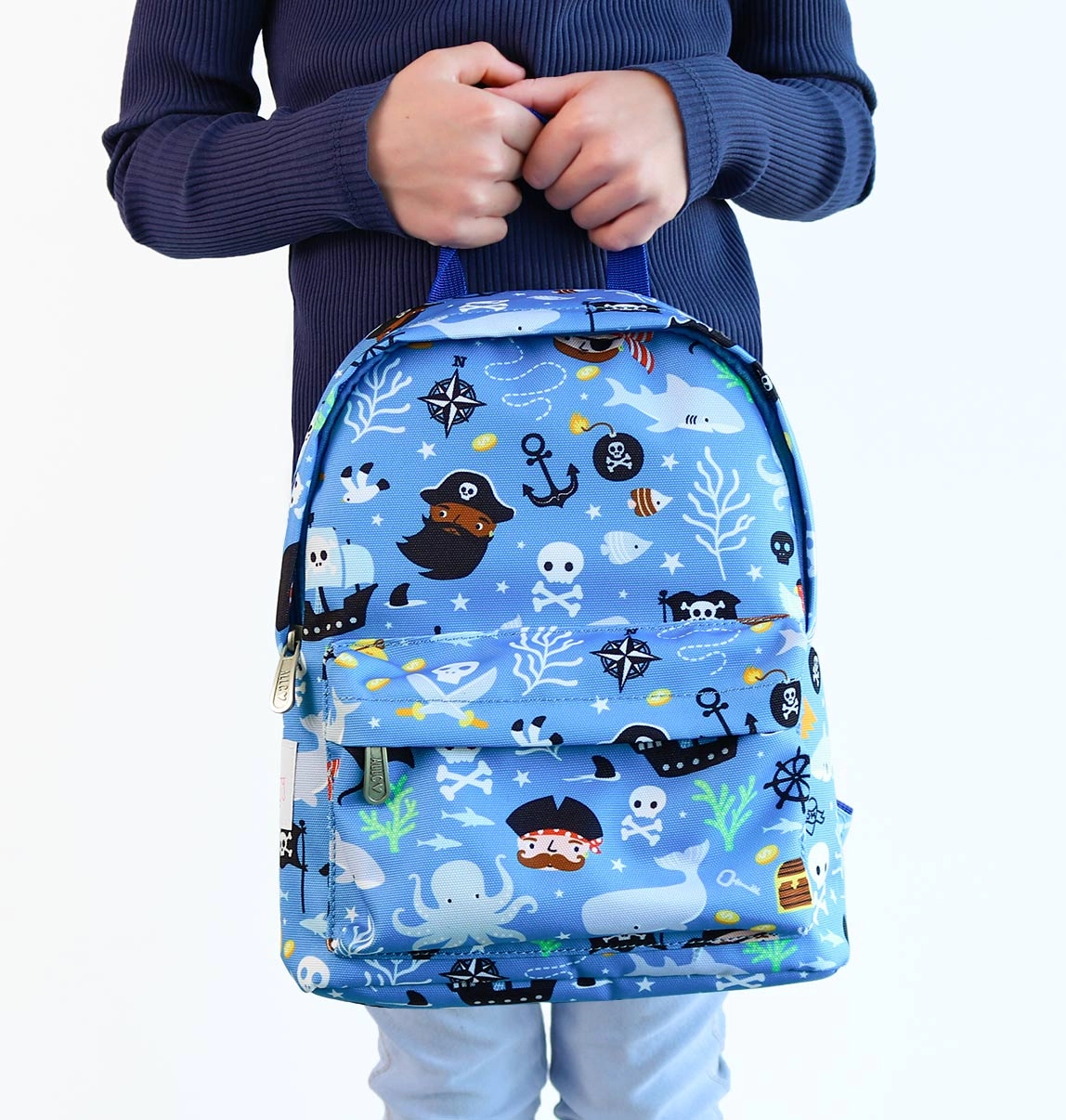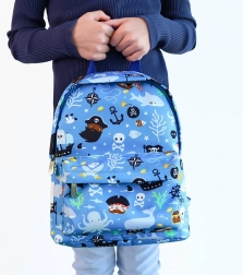 Prisrčen nahrbtnik s piratskim motivom bodo otroci vzljubili, starši pa bodo cenili njegovo premišljeno zasnovo. Glavna komora sprejme malico, steklenico in drobnarije, medtem ko sprednji žep na zadrgo poskrbi, da je vse pri roki. Za ergonomijo skrbijo oblazinjene naramnice in udobno hrbtišče, prsni pašček pa pomaga, da naramnice ostanejo na ramenih tudi med tekom.