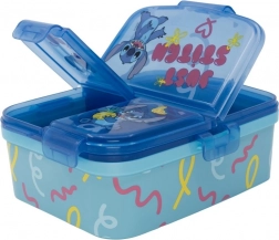 Stilska in praktična škatla za malico z motivom STITCH ponuja 1 velik in 2 majhna predelka za pregledno ločevanje hrane. Izdelana je iz vzdržljivega materiala in ne vsebuje BPA – idealna za v šolo, na igrišče in na izlete.