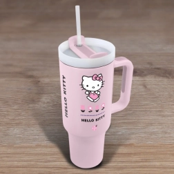 Slogoven potovalni lonček z motivom Hello Kitty za udobno pitje na poti in doma. Zahvaljujoč nerjavečemu jeklu pijače dolgo ostanejo vroče ali hladne, ima ergonomsko zasnovo, praktičen pokrov s slamico in udoben ročaj za enostavno uporabo. Idealno za v avto, v službo in na izlete. Prostornina 1200 ml.