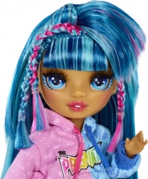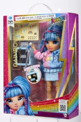 Punčka Skyler Bradshaw iz kolekcije Rainbow High Jr. High sije v ikonični modri in je pripravljena na oder. Zahvaljujoč polno gibljivemu telesu jo zlahka nastaviš v efektne poze, z mikrofonom in mini ojačevalcem pa boš pripravil pravo predstavo. Dodelan stajling, dolgi modri lasje in tematski dodatki naredijo to punčko odlično tako za igro kot za razstavljanje.