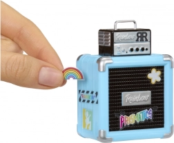 V paketu najdeš vse za takojšnjo glasbeno zabavo – dvodelni modni set, modne čevlje, mikrofon s stojalom, mini ojačevalec, list nalepk za okrasitev in glavnik za urejanje las. Kombiniraj dodatke, ustvarjaj zgodbe in zberi tudi ostale članice benda, da bo tvoja scena popolna.