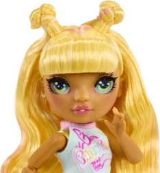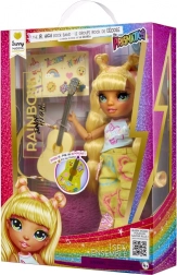 Razsvetli svoj svet s punčko Rainbow High Junior Fashion Sunny visoko približno 23 cm. Prinaša ikonični rumeni slog, premične sklepe za poziranje in glasbene dodatke, vključno z rumeno kitaro in nalepkami za lastne prilagoditve. Idealno za otroke od 4 let, ki obožujejo modo, glasbo in ustvarjalno igro.