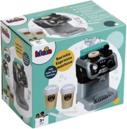 Stilski otroški espresso kavovar z bogatim priborom za realistično baristično igro. V kompletu so 2 lončka s pokrovčki, portafilter, 3 kavne kapsule, 2 vrečki sladkorja in tamper. Kavovar ima rezervoar za vodo in funkcijo pretoka, zato lahko otroci »skuhao« kavo kot pravi baristi.