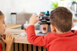 Zaradi realističnih kontrolnikov, snemljivih delov in varne plastične izvedbe se otroci naučijo osnov baristične »obrti«, razvijajo fino motoriko, domišljijo in socialne veščine. Set je kompakten, enostaven za pospravljanje in odlično dopolni vsako otroško kuhinjo.