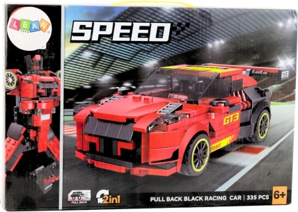 Konstrukcijski komplet 2v1: dirkalni avto GT3 in robot, 335 kosov. Kakovostna plastika, natančni deli, avto s pull-back pogonom. Odlična zabava za male konstruktorje.