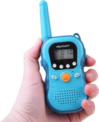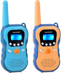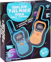 Zabaven komplet dveh otroških walkie-talkie radijskih postaj za igre na prostem in doma z dosegom do 3 km na odprtem prostoru. Enostavno upravljanje, 16 frekvenc, nastavitev glasnosti in modulator glasu (deček, deklica, robot + izvirnik) poskrbijo za veliko akcije. Ne manjka vhodni zvonec (4 toni), sponka za pas in odprtina za vrvico – idealno za vrt, plažo, gozd in tajne misije.
