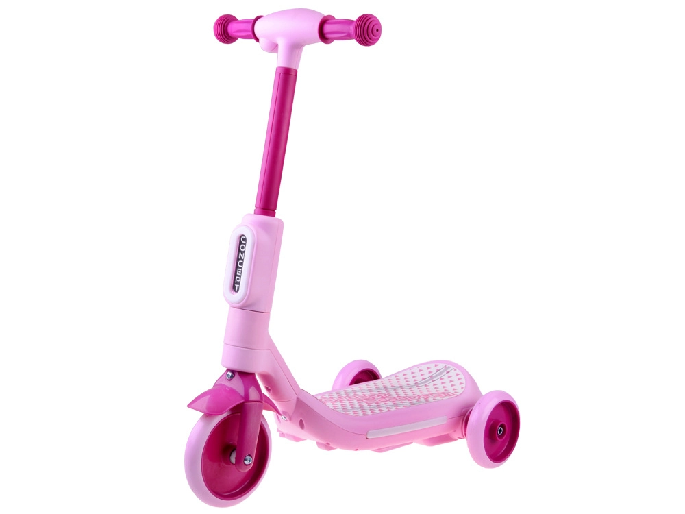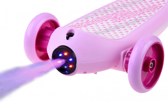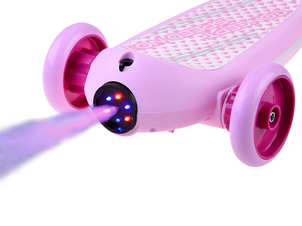 Otroški električni trikolesni skiro z LED lučmi in parnim učinkom – Rožnata