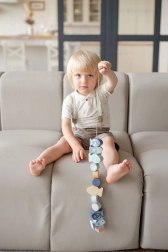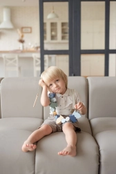 Odkrijte igriv komplet Cubika v nežnih pastelnih barvah – lesen natikankasti set z morsko tematiko, ki razvija fino motoriko, potrpežljivost in spomin. Vsebuje 12 lesenih elementov, 45 cm dolgo vezalko z leseno paličico ter 8 predlog za natikanje. Izdelano iz kakovostnega javorja in bukve, vodne barve so varne za otroke. Certifikat TÜV in standard EN 71.