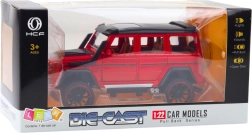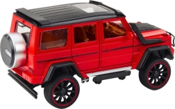 Kovinski terenski model v merilu 1:22 združuje trpežne materiale in realistično izvedbo. Rdeča karoserija, skrbni detajli in športna zasnova poudarijo vtis pravega off-roada, ki odlično izgleda doma ali na poti.