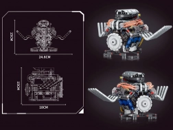 Sestavni del so oštevilčene vrečke za lažjo orientacijo, USB kabel za polnjenje in pregleden slikovni priročnik. Učinkovita rdeča svetloba modelu doda impresiven videz in poudari gibajoče se dele.