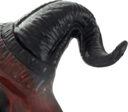 - Izrazit dizajn: rdeča osnova, črni rogovi, izraziti 3D detajli