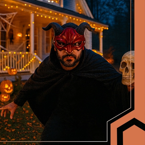 Univerzalna velikost in prilagodljivo pritrjevanje zagotavljata, da ustreza večini odraslih in starejšim najstnikom. Realistični 3D elementi obraza in rogov ustvarjajo impresiven učinek, ki se poda tako moškim kot ženskih kostumom – od hudiča in demona do pošasti in mitoloških likov.