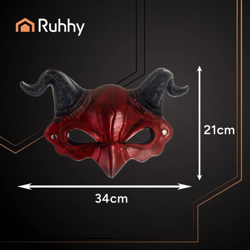 Slogovna rdeča maska hudiča z črnimi rogovi RUHHY bo vaši grozljivi ali fantazijski preobleki dodala pravi srhljiv pridih. Je lahka, udobna in zaradi elastičnega traku odlično stoji na glavi. Idealna za noč čarovnic, pustne bale, tematske zabave, gledališke predstave in cosplay – realistični 3D detajli pritegnejo pozornost in poudarijo temno atmosfero.